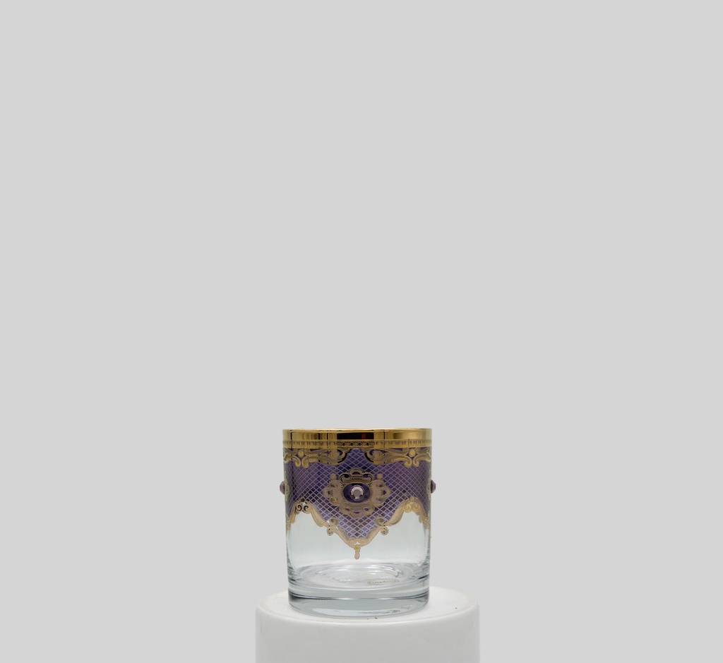 العصرية، مثالية لإضفاء لمسة من الفخامة على أي مناسبة المادة: كريستال اللون: شفاف مع لمسات بنفسجية وزخارف ذهبية الصنع: ايطالي العدد: 12 |