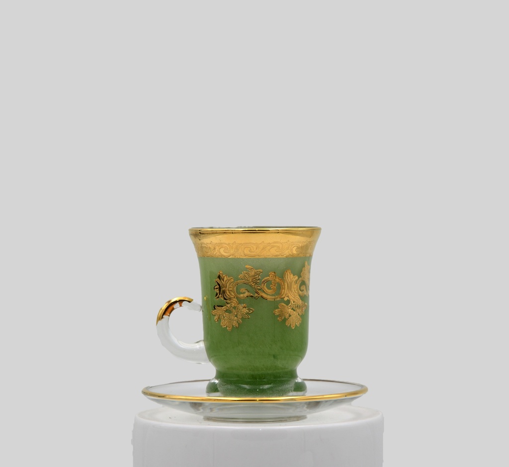 مناسبة المادة: كرستال اللون:اخضر مع نقشات ذهبية الصنع: ايطالي العدد: 12 |