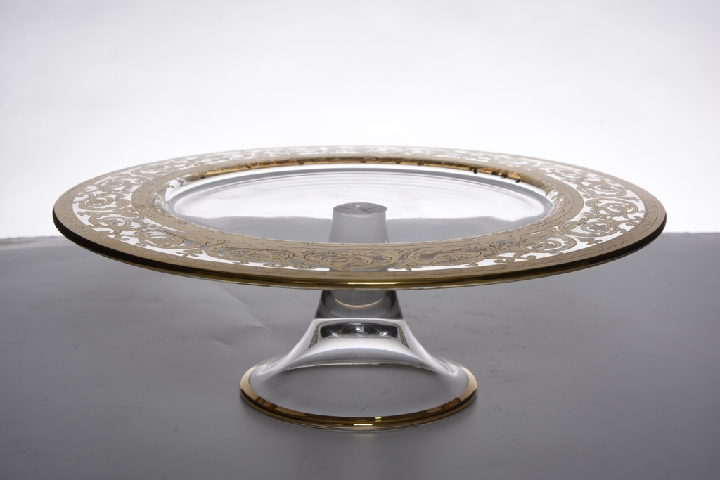 | صحن كريستال منقوش بلون ذهبي مثالي لتقديم الحلوى أو الكيك المادة:كرستال اصنع:ايطالي |